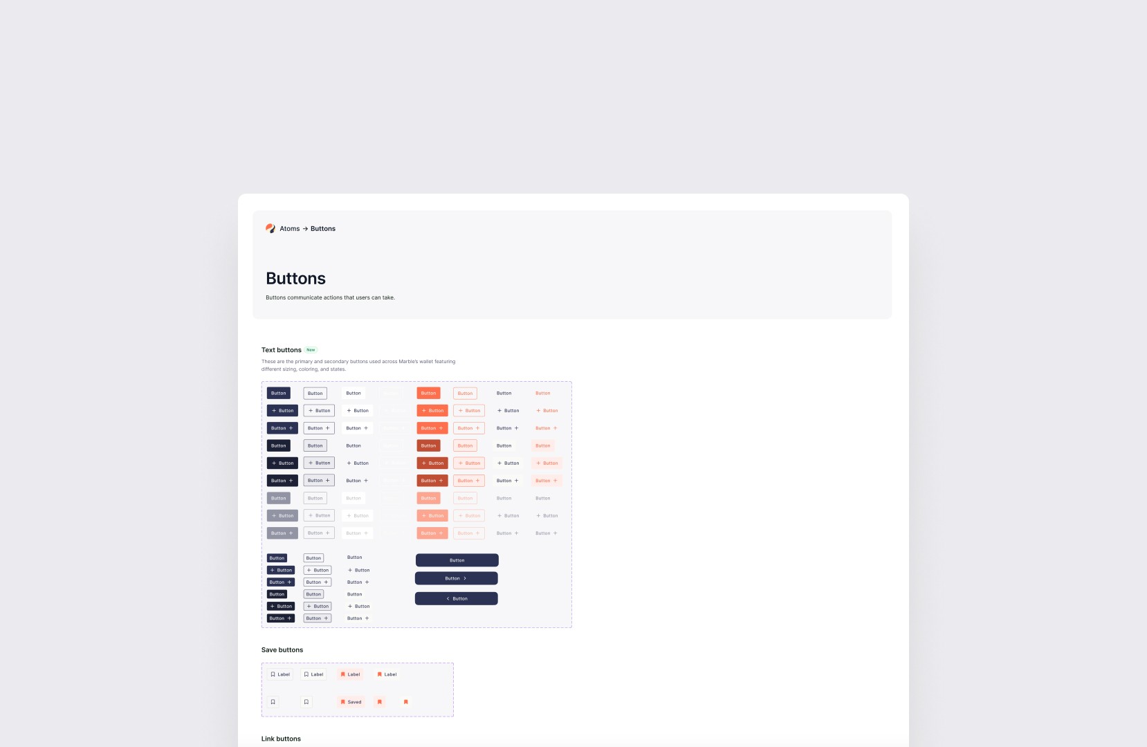 marble’s ui was turning into a patchwork — so we built a system to stitch it all together. as the sole designer, i led the charge, from auditing legacy components to creating a scalable library in figma and syncing closely with engineering. the result was a flexible design system that sped up builds, streamlined handoffs, and brought consistency (and sanity) back to the product.