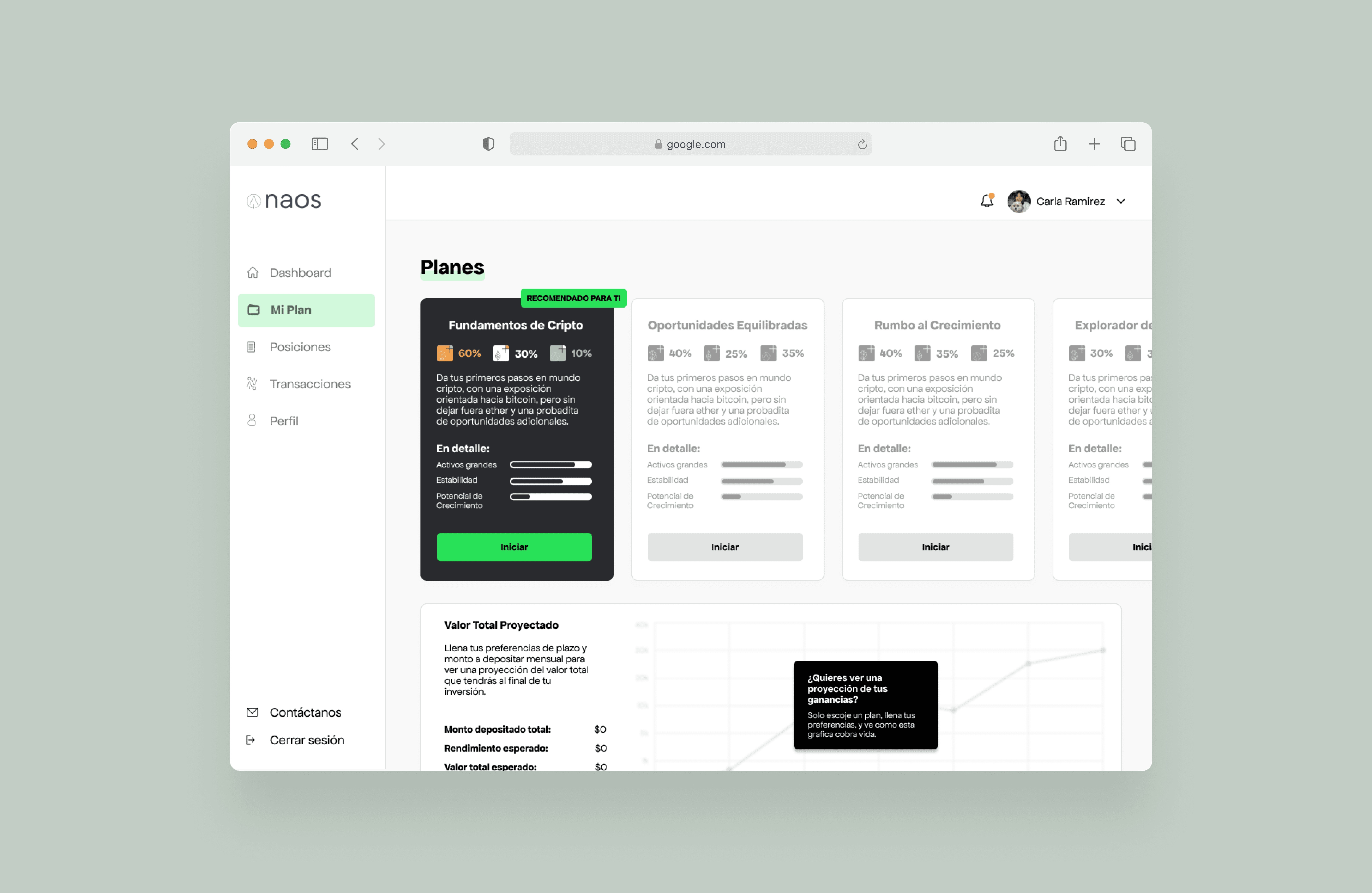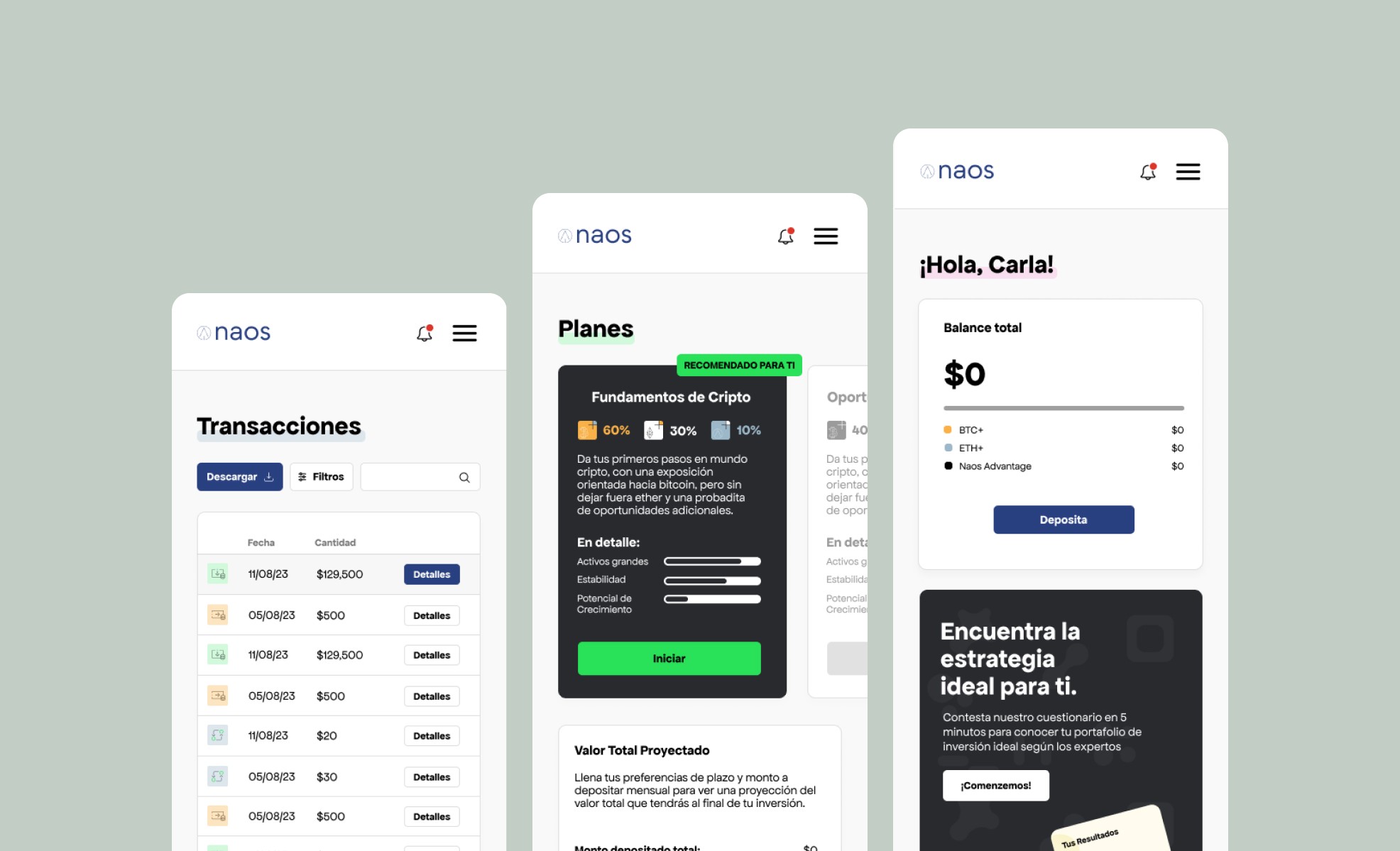 crypto isn’t built for everyone — but naos is. made for and by latinos, it helps users track, understand, and invest in crypto without the jargon or gatekeeping. i led the full design lifecycle, focusing on clarity and trust. the result? s clean, intuitive platform that drove a 40% increase in user retention and made first-time investors feel right at home.